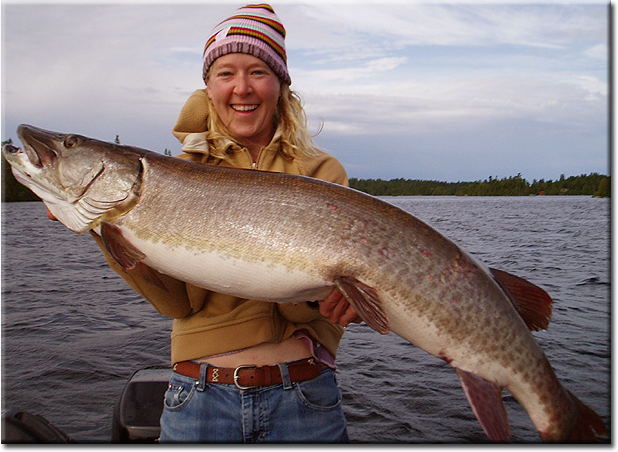 [Oh, the strength of a big musky! Don't ever let anyone fool you with some silly talk that the smallmouth bass, or the blue gill, is the best fighting freshwater fish, pound for pound. I certainly enjoy catching both, but if they can't pull you right out of your socks, we're not really talking the same game.]